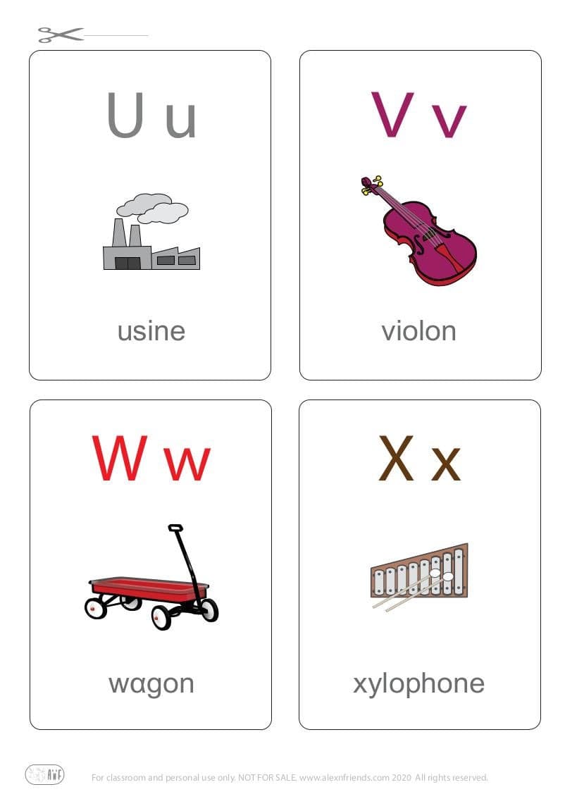 Έγχρωμες καρτέλες εκμάθησης του Γαλλικού αλφαβήτου