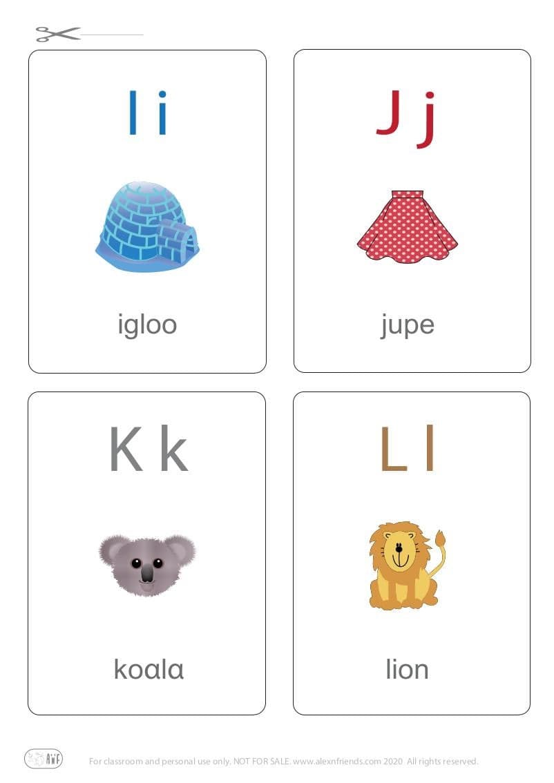 Εκτυπώστε και κόψτε τις καρτέλες οι οποίες περιλαμβάνουν 4 γράμματα ανά σελίδα. Τα γκρι περιγράμματα θα σας βοηθήσουν να τις κόψετε όμορφα και με ακρίβεια. Με ερωτήσεις που περιγράφουν την κάθε εικόνα παίξτε με το παιδί και βοηθήστε το να μάθει τις πρώτες του λεξούλες και να διευρύνει τις λεκτικές του ικανότητες.