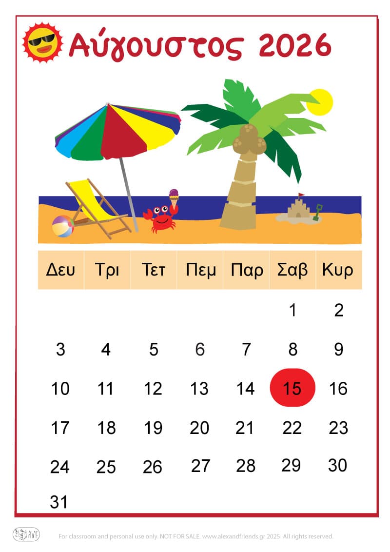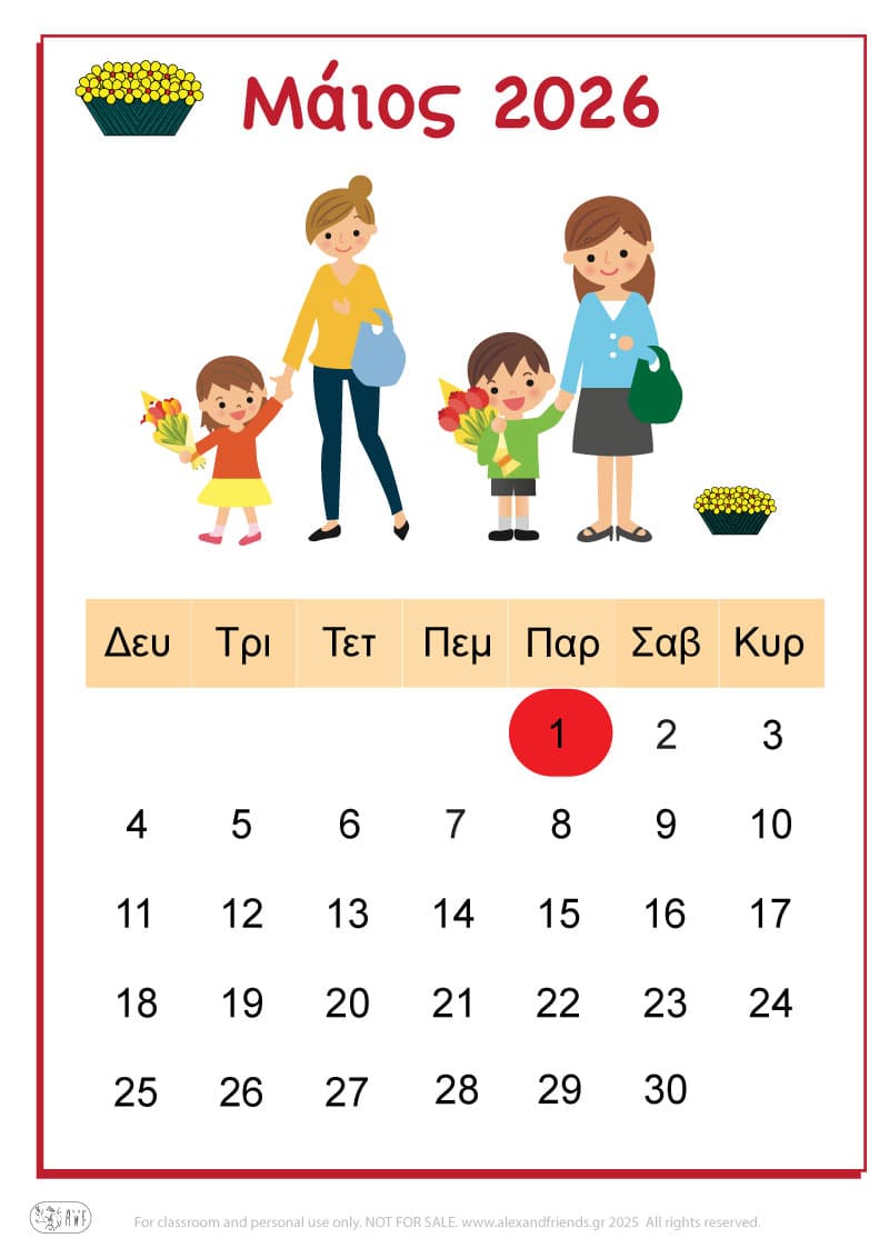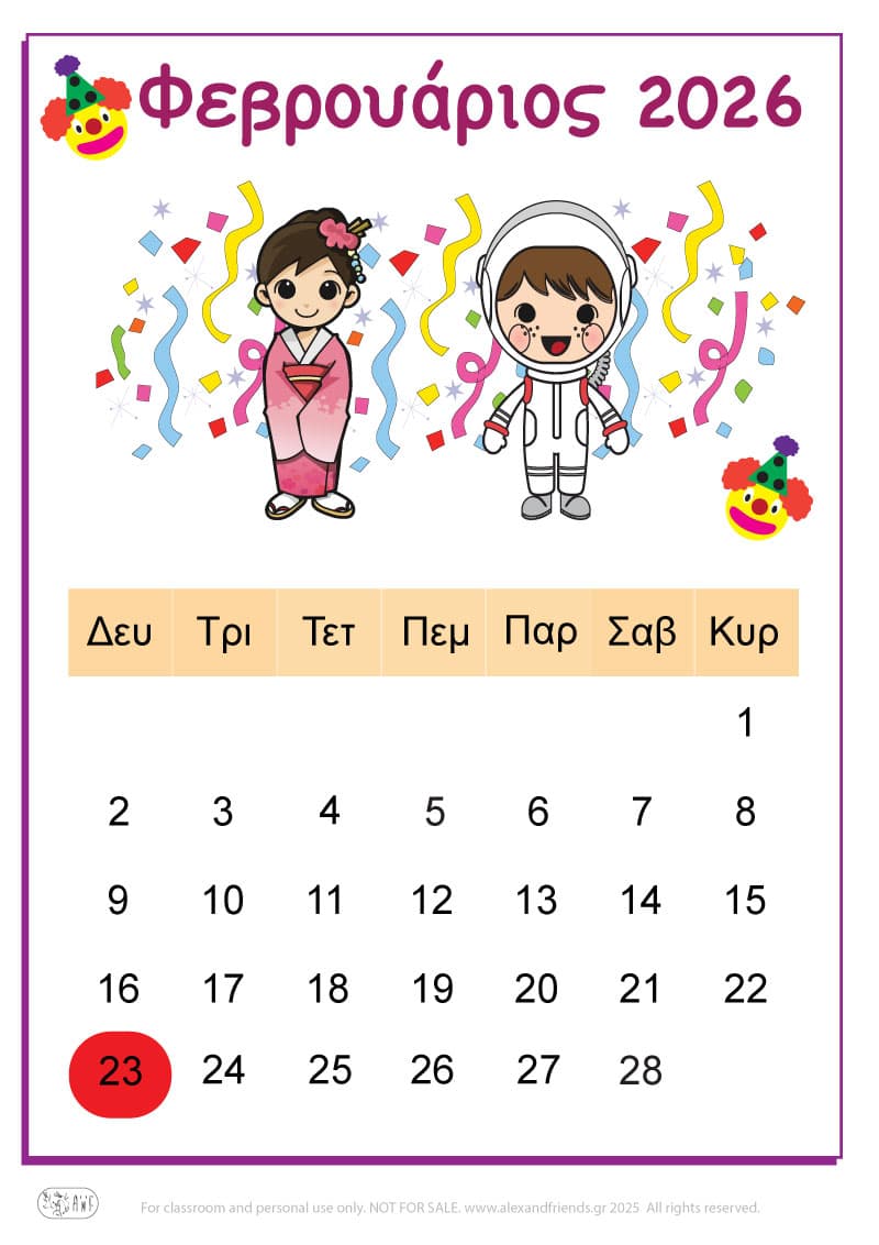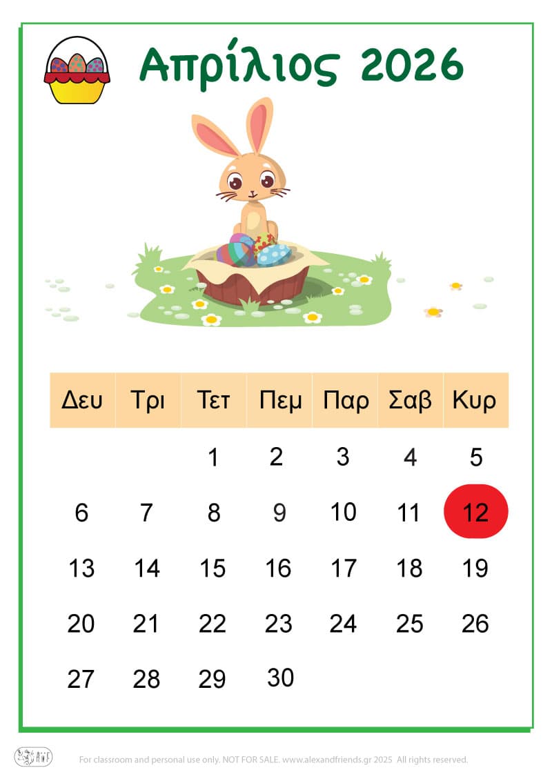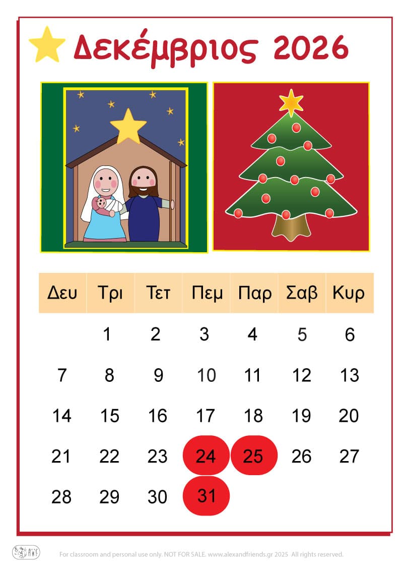 Για την χρονιά που έρχεται έχουμε ετοιμάσει ένα απλό ημερολόγιο για τα πιτσιρίκια με χαρούμενες εικόνες και διαχωρίσαμε με χρώματα τις μέρες του Σαββατοκύριακου, των θρησκευτικών και εθνικών εορτών καθώς και την γιορτή της μητέρας και του πατέρα.