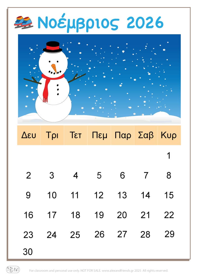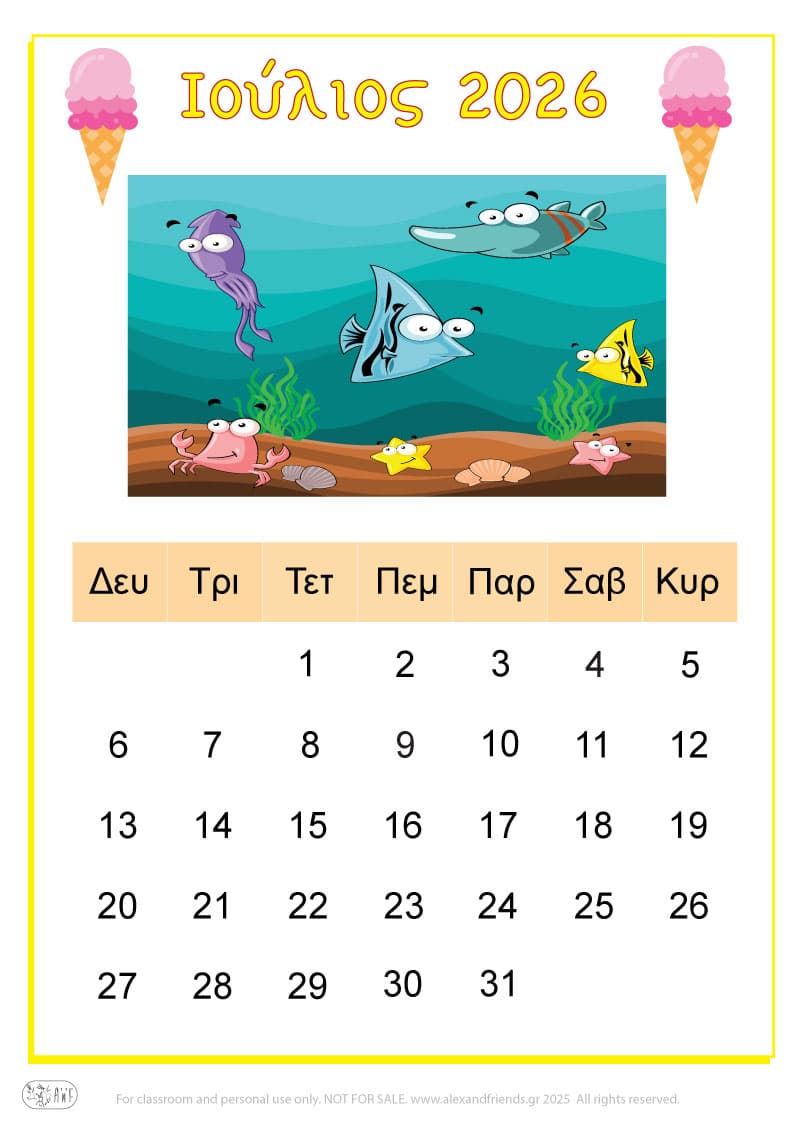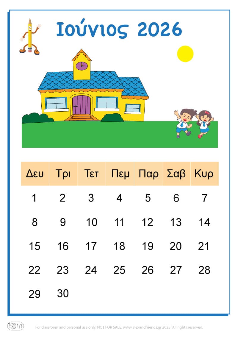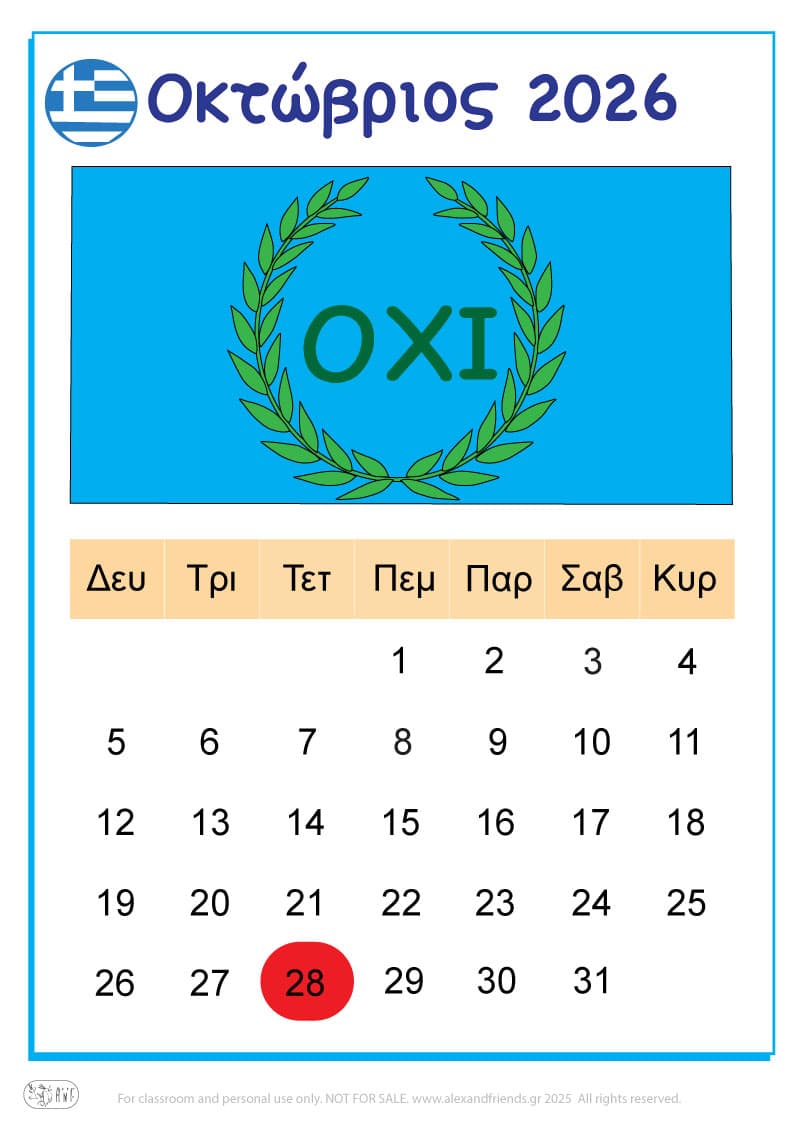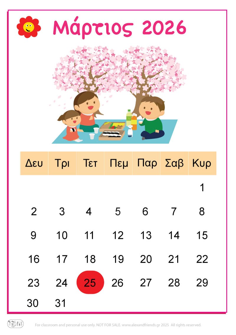 Για την χρονιά που έρχεται έχουμε ετοιμάσει ένα απλό ημερολόγιο για τα πιτσιρίκια με χαρούμενες εικόνες και διαχωρίσαμε με χρώματα τις μέρες του Σαββατοκύριακου, των θρησκευτικών και εθνικών εορτών καθώς και την γιορτή της μητέρας και του πατέρα.