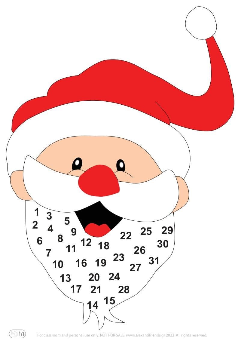With Santa's white beard you will count down to the New Year! The kids can't wait to open their presents under the tree! In each number, you and your little one can glue a piece of cotton to complete the white Santa's beard.