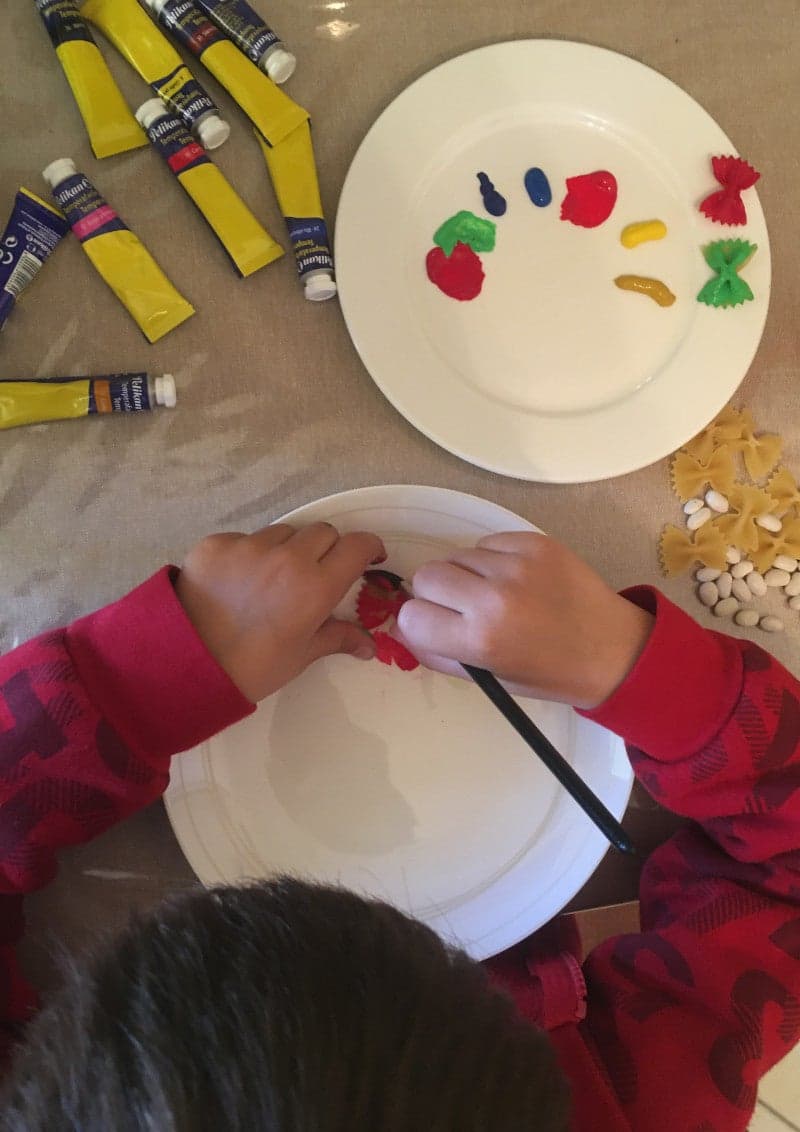 Pasta, legumes, buttons! Let your little ones chose any materials they like and then glue inside the egg (the smaller ones) or in the case of pasta or legumes such as in the picture, you may suggest them to paint them in the colors of their choosing. Once dry, they're ready to be glued! Let their creativity take control!