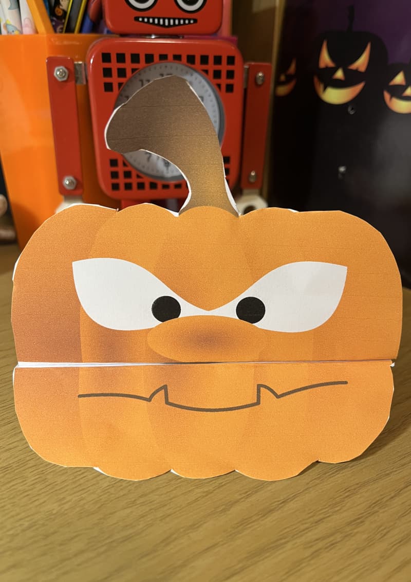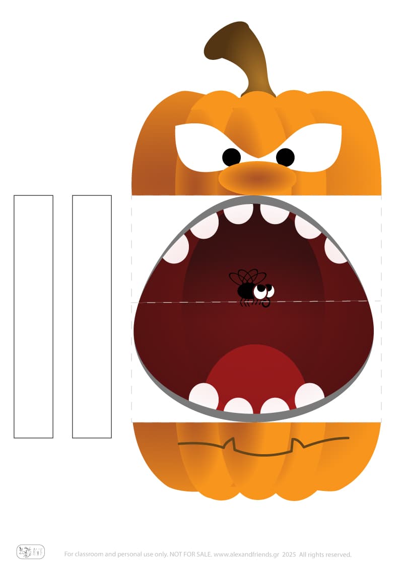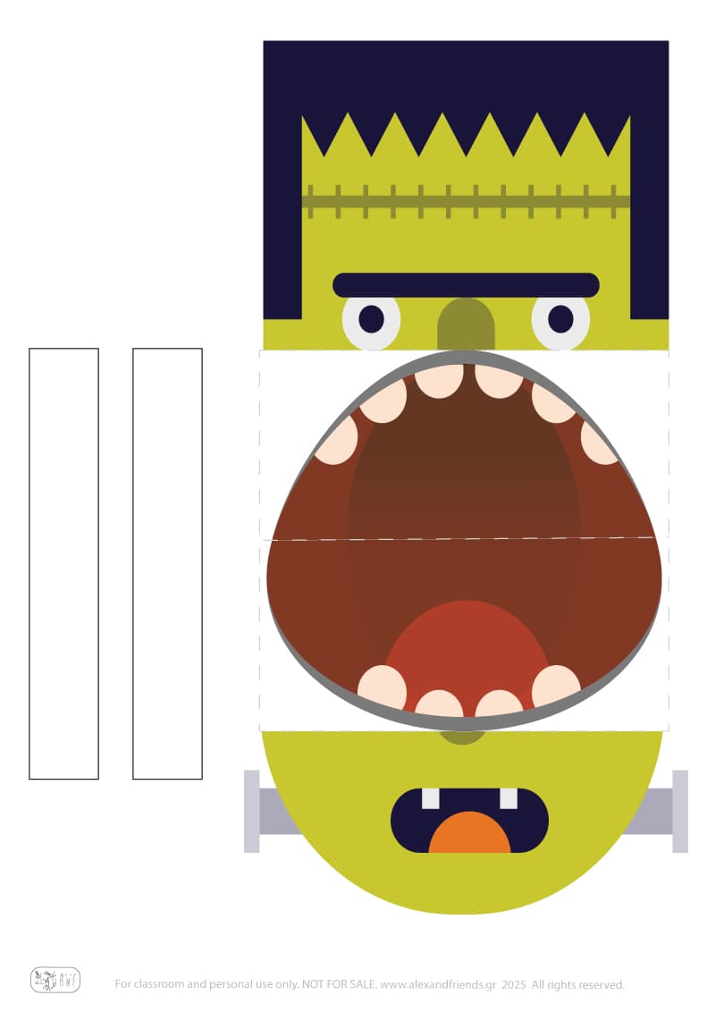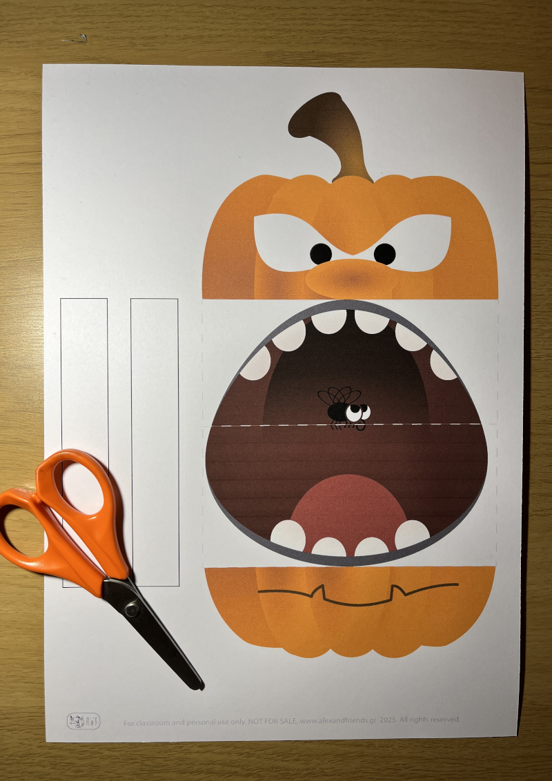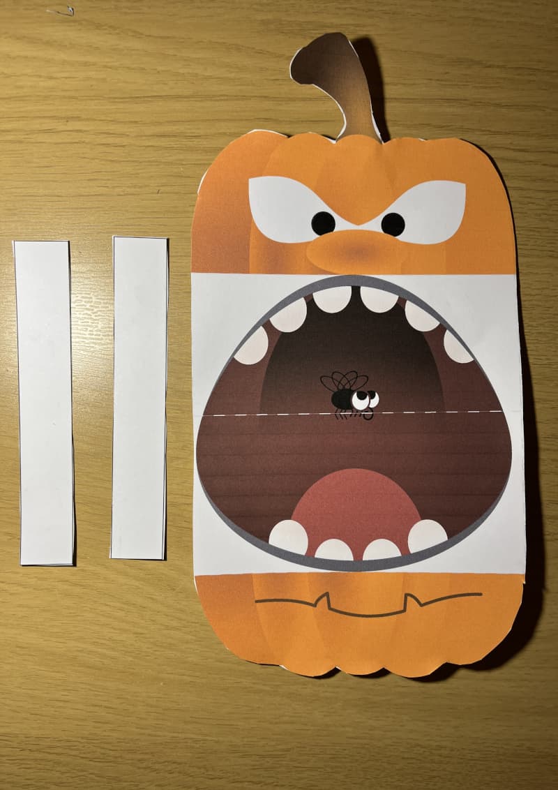 Step 2 — Fold the mouth Fold the mouth inwards along the line. When closed, the mouth disappears — when opened, a spooky mouth with a funny tongue appears!